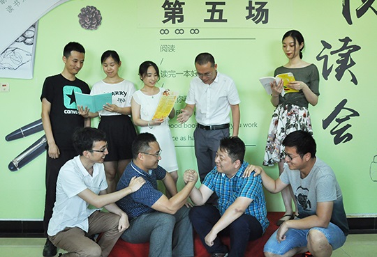 我們?nèi)サ钠髽I(yè)文化活動,今年又邁向新的高度:隨著三圣文健社團(tuán)的成立,各子公司的職工紛紛報名參加了“浪漫吉他”、“悅讀會”、“動感籃球”、“活力乒乓”等集文娛健身又形式多樣的社團(tuán)活動。此期公眾號展示的,正是其中文藝社團(tuán)之一:“三圣悅讀會”近期如火如荼進(jìn)行的大型活動----朗讀大賽的直播場景。