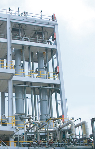 Cl2、H2合成、吸收、冷卻,副產(chǎn)尾氣再處理四個(gè)工藝程序合并在一臺設(shè)備內(nèi)完成。